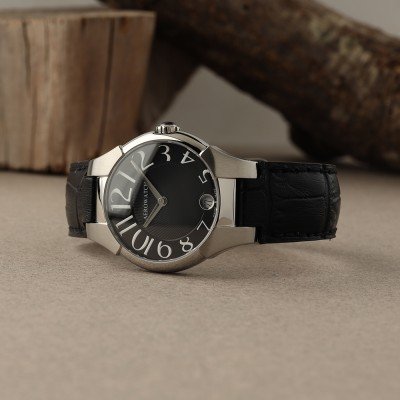 Cette montre Aerowatch a un boîtier Inox 32 mm en diamètre et est équipée d'un bracelet cuir. Le boîtier contient un mouvement Ronda et la montre est dotée d'un cristal Saphire..