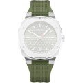 Ce bracelet de montre Alpinaest fait de silicone et est attaché à la montre au moyen de Épingles à ressort. Le bracelet a une taille de 21 mm. Le bracelet n'a pas de support droit, ce qui signifie que ce bracelet convient uniquement aux montres énumérées ci-dessous.