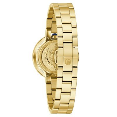 Cette montre Bulova a un boîtier Inox 30 mm en diamètre et est équipée d'un bracelet Inox. Le boîtier contient un mouvement Miyota et la montre est dotée d'un cristal Saphire..