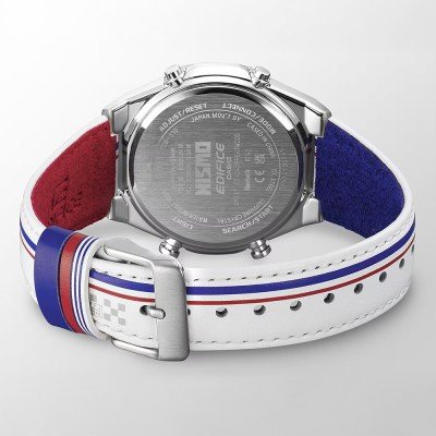 Cette montre Casio Edifice a un boîtier Inox 43 mm en diamètre et est équipée d'un bracelet cuir. Le boîtier contient un mouvement Casio et la montre est dotée d'un cristal Saphire..
