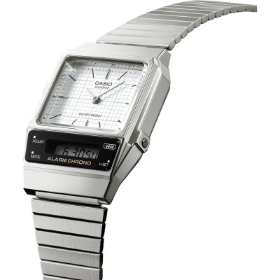 Cette montre Casio a un boîtier Résine 32.1 mm en diamètre et est équipée d'un bracelet Inox. Le boîtier contient un mouvement Casio et la montre est dotée d'un cristal Acrylique..