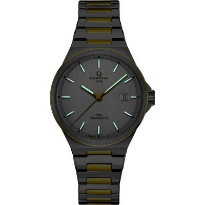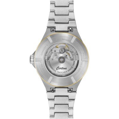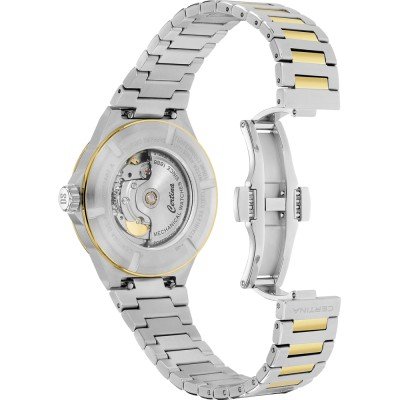 Cette montre Certina a un boîtier Inox 39 mm en diamètre et est équipée d'un bracelet Inox. Le boîtier contient un mouvement ETA et la montre est dotée d'un cristal Saphir antireflet unique..