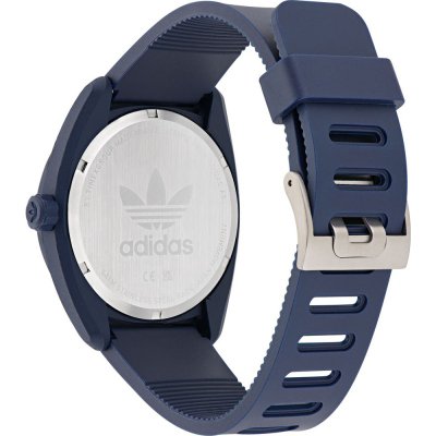 Diese Adidas Uhr hat ein Bioceramic Gehäuse mit einem Durchmesser von 44 mm und ist mit einem Armband aus Bio-Kunststoff versehen. In der Uhr arbeitet ein Timex Uhrwerk. Das Glas der Uhr besteht aus Mineral - Glas.