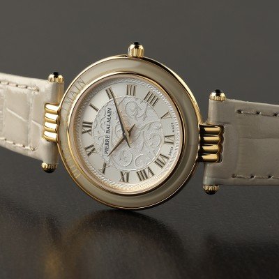 Diese Balmain Uhr hat ein Edelstahl Gehäuse mit einem Durchmesser von 30 mm und ist mit einem Armband aus Leder versehen. In der Uhr arbeitet ein ETA Uhrwerk. Das Glas der Uhr besteht aus Sapphir - Glas.