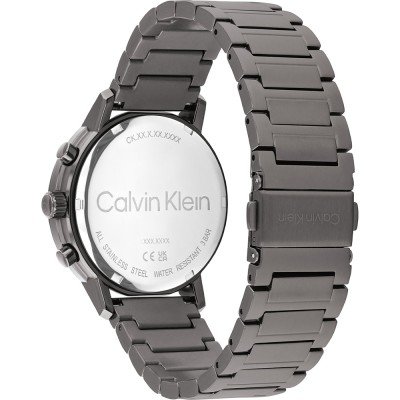 Diese Calvin Klein Uhr hat ein Edelstahl Gehäuse mit einem Durchmesser von 42 mm und ist mit einem Armband aus Edelstahl versehen. In der Uhr arbeitet ein Ronda Uhrwerk. Das Glas der Uhr besteht aus Mineral - Glas.