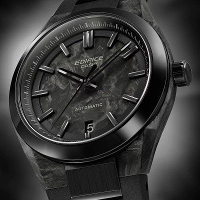 Diese Casio Edifice Uhr hat ein Carbon Gehäuse mit einem Durchmesser von 39 mm und ist mit einem Armband aus Kautschuk versehen. In der Uhr arbeitet ein Casio Uhrwerk. Das Glas der Uhr besteht aus Sapphir - Glas.