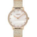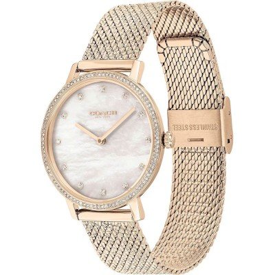 Diese Coach Uhr hat ein Edelstahl Gehäuse mit einem Durchmesser von 35 mm und ist mit einem Armband aus Edelstahl versehen. In der Uhr arbeitet ein Seiko Instruments Inc. Uhrwerk. Das Glas der Uhr besteht aus Mineral - Glas.