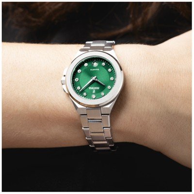 Diese Festina Uhr hat ein Edelstahl Gehäuse mit einem Durchmesser von 33 mm und ist mit einem Armband aus Edelstahl versehen. In der Uhr arbeitet ein Miyota Uhrwerk. Das Glas der Uhr besteht aus Mineral - Glas.