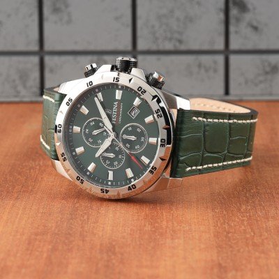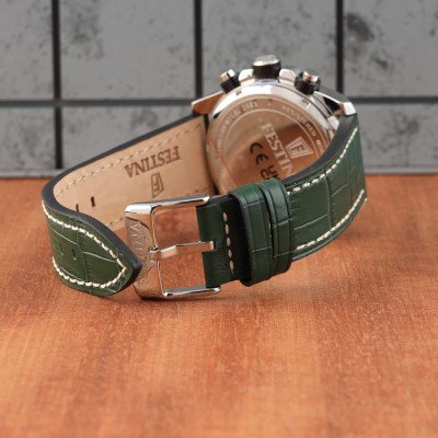 Diese Festina Uhr hat ein Edelstahl Gehäuse mit einem Durchmesser von 44.5 mm und ist mit einem Armband aus Leder versehen. In der Uhr arbeitet ein Miyota Uhrwerk. Das Glas der Uhr besteht aus Mineral - Glas.