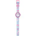 Diese Flik Flak Uhr hat ein Bio-Kunststoff Gehäuse mit einem Durchmesser von 30 mm und ist mit einem Armband aus Textil versehen. In der Uhr arbeitet ein ETA Uhrwerk. Das Glas der Uhr besteht aus Acryl - Glas.
