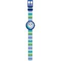 Diese Flik Flak Uhr hat ein Bio-Kunststoff Gehäuse mit einem Durchmesser von 29.5 mm und ist mit einem Armband aus Textil versehen. In der Uhr arbeitet ein ETA Uhrwerk. Das Glas der Uhr besteht aus Acryl - Glas.