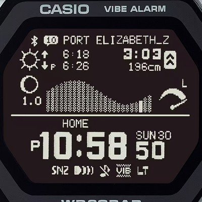 Diese G-Shock Uhr hat ein Kunststoff / Harz Gehäuse mit einem Durchmesser von 46 mm und ist mit einem Armband aus Bio-Kunststoff versehen. In der Uhr arbeitet ein Casio Uhrwerk. Das Glas der Uhr besteht aus Mineral - Glas.