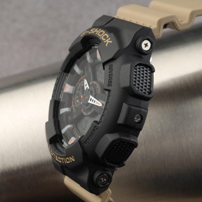 Diese G-Shock Uhr hat ein Kunstharz Gehäuse mit einem Durchmesser von 51.2 mm und ist mit einem Armband aus Kunstharz versehen. In der Uhr arbeitet ein Casio Uhrwerk. Das Glas der Uhr besteht aus Mineral - Glas.