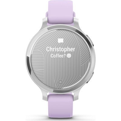 Diese Garmin Uhr hat ein Aluminum Gehäuse mit einem Durchmesser von 38 mm und ist mit einem Armband aus Kautschuk versehen. In der Uhr arbeitet ein Garmin Uhrwerk. Das Glas der Uhr besteht aus Corning Gorilla Glass 3 - Glas.