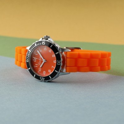 Diese Garonne Kids Uhr hat ein Metalllegierung Gehäuse mit einem Durchmesser von 30 mm und ist mit einem Armband aus Kautschuk versehen. In der Uhr arbeitet ein Miyota Uhrwerk. Das Glas der Uhr besteht aus Mineral - Glas.