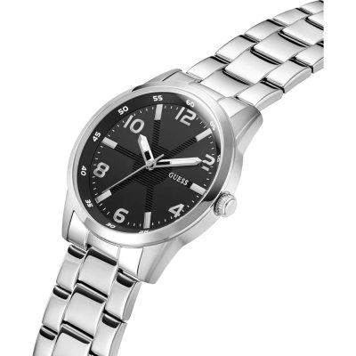 Diese Guess Uhr hat ein Edelstahl Gehäuse mit einem Durchmesser von 42 mm und ist mit einem Armband aus Edelstahl versehen.