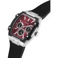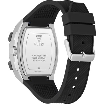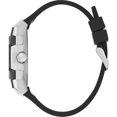 Diese Guess Uhr hat ein Edelstahl Gehäuse mit einem Durchmesser von 42 mm und ist mit einem Armband aus Kautschuk versehen. In der Uhr arbeitet ein Seiko Instruments Inc. Uhrwerk. Das Glas der Uhr besteht aus Mineral - Glas.