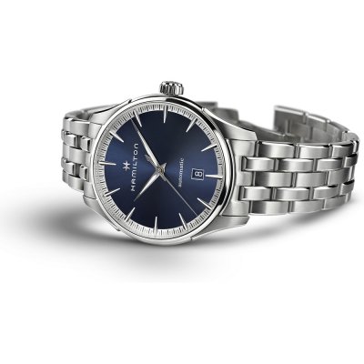 Diese Hamilton Uhr hat ein Edelstahl Gehäuse mit einem Durchmesser von 40 mm und ist mit einem Armband aus Edelstahl versehen. In der Uhr arbeitet ein ETA Uhrwerk. Das Glas der Uhr besteht aus Sapphir - Glas.