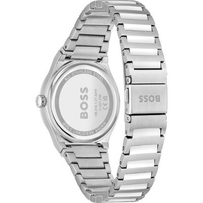 Diese Hugo Boss Uhr hat ein Edelstahl Gehäuse mit einem Durchmesser von 35 mm und ist mit einem Armband aus Edelstahl versehen. In der Uhr arbeitet ein Miyota Uhrwerk. Das Glas der Uhr besteht aus Mineral - Glas.