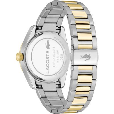 Diese Lacoste Uhr hat ein Edelstahl Gehäuse mit einem Durchmesser von 39 mm und ist mit einem Armband aus Edelstahl versehen.