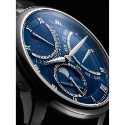 Diese Maurice Lacroix Uhr hat ein Edelstahl Gehäuse mit einem Durchmesser von 43 mm und ist mit einem Armband aus Leder versehen. In der Uhr arbeitet ein ML Uhrwerk. Das Glas der Uhr besteht aus Sapphir - Glas.