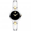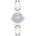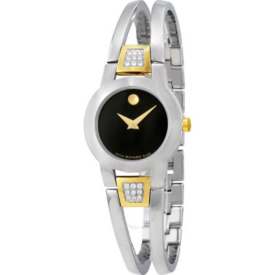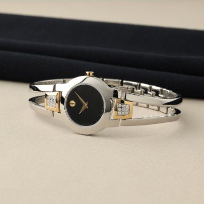 Diese Movado Uhr hat ein Edelstahl Gehäuse mit einem Durchmesser von 24 mm und ist mit einem Armband aus Edelstahl versehen. In der Uhr arbeitet ein ETA Uhrwerk. Das Glas der Uhr besteht aus Sapphir - Glas.