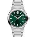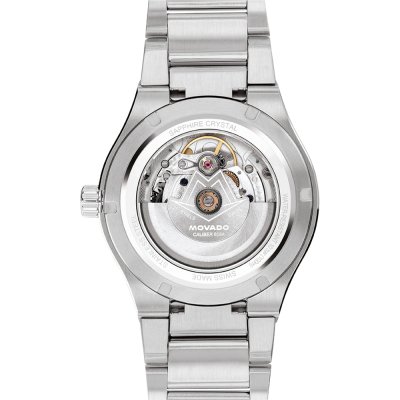 Diese Movado Uhr hat ein Edelstahl Gehäuse mit einem Durchmesser von 40 mm und ist mit einem Armband aus Edelstahl versehen. In der Uhr arbeitet ein Sellita Uhrwerk. Das Glas der Uhr besteht aus Sapphir - Glas.