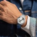 Diese Olympic Uhr hat ein Edelstahl Gehäuse mit einem Durchmesser von 44 mm und ist mit einem Armband aus Edelstahl versehen. In der Uhr arbeitet ein Miyota Uhrwerk. Das Glas der Uhr besteht aus Sapphir - Glas.