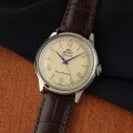 Diese Orient Uhr hat ein Edelstahl Gehäuse mit einem Durchmesser von 38 mm und ist mit einem Armband aus Leder versehen. In der Uhr arbeitet ein Epson Uhrwerk. Das Glas der Uhr besteht aus Mineral - Glas.