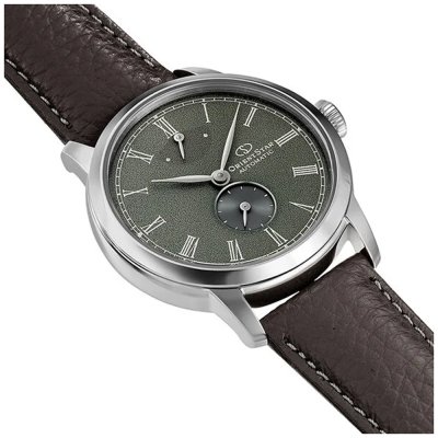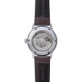 Diese Orient Uhr hat ein Edelstahl Gehäuse mit einem Durchmesser von 39 mm und ist mit einem Armband aus Leder versehen. In der Uhr arbeitet ein Epson Uhrwerk. Das Glas der Uhr besteht aus Mineral - Glas.