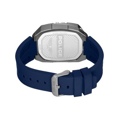 Diese Police Uhr hat ein Edelstahl Gehäuse mit einem Durchmesser von 43 mm und ist mit einem Armband aus Kautschuk versehen. In der Uhr arbeitet ein Seiko Instruments Inc. Uhrwerk. Das Glas der Uhr besteht aus Mineral - Glas.