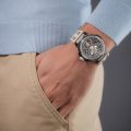 Diese Police Uhr hat ein Kunstharz Gehäuse mit einem Durchmesser von 44 mm und ist mit einem Armband aus Kautschuk versehen. In der Uhr arbeitet ein CN Uhrwerk. Das Glas der Uhr besteht aus Mineral - Glas.