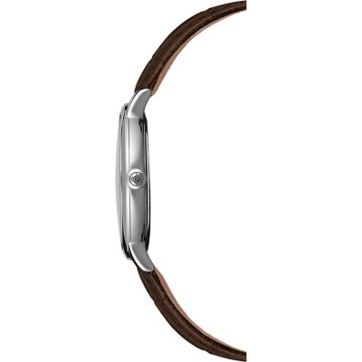 Diese Raymond Weil Uhr hat ein Edelstahl Gehäuse mit einem Durchmesser von 39 mm und ist mit einem Armband aus Leder versehen. In der Uhr arbeitet ein ETA Uhrwerk. Das Glas der Uhr besteht aus Sapphir - Glas.
