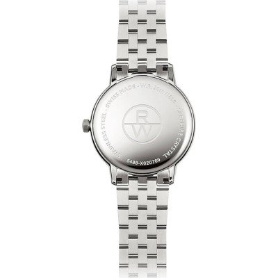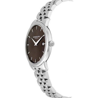 Diese Raymond Weil Uhr hat ein Edelstahl Gehäuse mit einem Durchmesser von 39 mm und ist mit einem Armband aus Edelstahl versehen. In der Uhr arbeitet ein ETA Uhrwerk. Das Glas der Uhr besteht aus Sapphir - Glas.