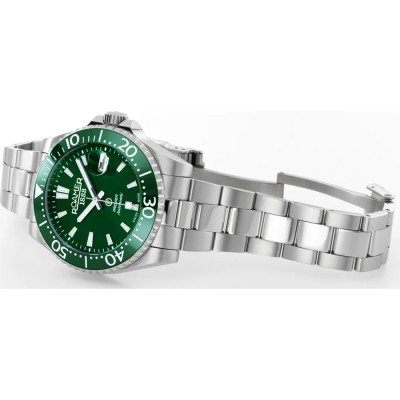 Die Uhr ist wasserdicht bis 20 ATM. Dies bedeutet, dass die Uhr zum Tauchen geeignet ist.. Die Uhr wird mit Roamer 2+5 geliefert.