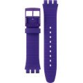 Dieses Swatch Uhrarmband ist aus silikon gefertigt und wird mit stahlstifte an der Uhr befestigt. Das Band hat eine Breite von 19.7 mm und wird mit einer dornschließe geschlossen. Das Uhrenarmband hat keine gerade Halterung, was bedeutet, dass dieses Band nur für die unten aufgeführten Uhren geeignet ist.