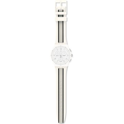 Dieses Swatch Uhrarmband ist aus silikon gefertigt und wird mit stahlstifte an der Uhr befestigt. Das Band hat eine Breite von 20.1 mm und wird mit einer dornschließe geschlossen. Das Uhrenarmband hat keine gerade Halterung, was bedeutet, dass dieses Band nur für die unten aufgeführten Uhren geeignet ist.