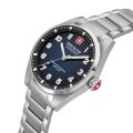 Diese Swiss Military Hanowa Uhr hat ein Edelstahl Gehäuse mit einem Durchmesser von 42 mm und ist mit einem Armband aus Edelstahl versehen. In der Uhr arbeitet ein Ronda Uhrwerk. Das Glas der Uhr besteht aus Sapphir - Glas.