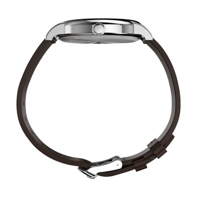 Diese Timex Uhr hat ein Metalllegierung Gehäuse mit einem Durchmesser von 38 mm und ist mit einem Armband aus Leder versehen. In der Uhr arbeitet ein Timex Uhrwerk. Das Glas der Uhr besteht aus Mineral - Glas.