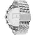 Diese Tommy Hilfiger Uhr hat ein Edelstahl Gehäuse mit einem Durchmesser von 44 mm und ist mit einem Armband aus Edelstahl versehen. In der Uhr arbeitet ein Seiko Instruments Inc. Uhrwerk. Das Glas der Uhr besteht aus Mineral - Glas.