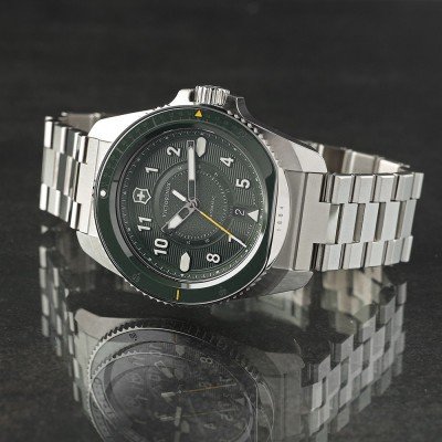 Diese Victorinox Uhr hat ein Edelstahl Gehäuse mit einem Durchmesser von 43 mm und ist mit einem Armband aus Edelstahl versehen. In der Uhr arbeitet ein Sellita Uhrwerk. Das Glas der Uhr besteht aus Sapphir - Glas.