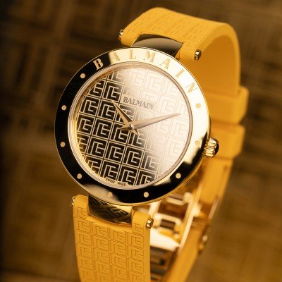 This Balmain watch has a case made of stainless steel with a diameter of 33 mm and is fitted with a rubber band. Inside the case lies a ETA movement and the watch features a Sapphire crystal.