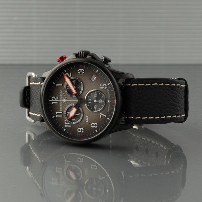 This Bauhaus watch has a case made of stainless steel with a diameter of 42 mm and is fitted with a leather band. Inside the case lies a ETA movement and the watch features a K1 Mineral crystal.
