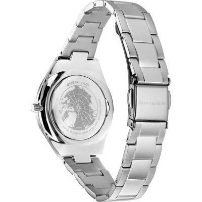 This Bering watch has a case made of stainless steel with a diameter of 31 mm and is fitted with a stainless steel band. Inside the case lies a Miyota movement and the watch features a Mineral crystal.