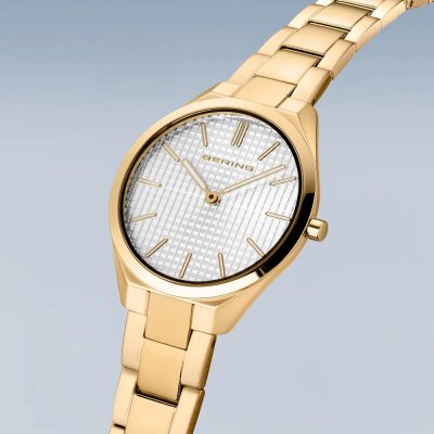 This Bering watch has a case made of stainless steel with a diameter of 31 mm and is fitted with a stainless steel band. Inside the case lies a Miyota movement and the watch features a Sapphire crystal.