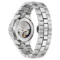 This Bulova watch has a case made of stainless steel with a diameter of 40 mm and is fitted with a stainless steel band. Inside the case lies a Miyota movement and the watch features a Mineral crystal.