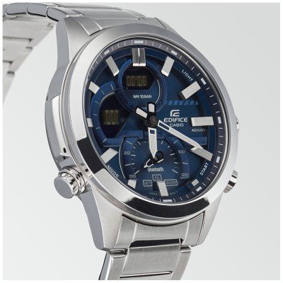 This Casio Edifice watch has a case made of stainless steel with a diameter of 46 mm and is fitted with a stainless steel band. Inside the case lies a Casio movement and the watch features a Mineral crystal.