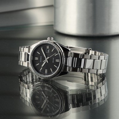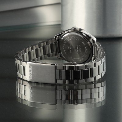 This Casio watch has a case made of metal alloy with a diameter of 30.2 mm and is fitted with a stainless steel band. Inside the case lies a Casio movement and the watch features a Mineral crystal.