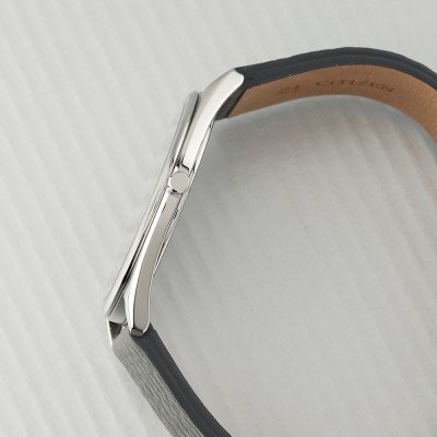 This Citizen watch has a case made of stainless steel with a diameter of 38.4 mm and is fitted with a leather band. Inside the case lies a Citizen movement and the watch features a Sapphire crystal.
