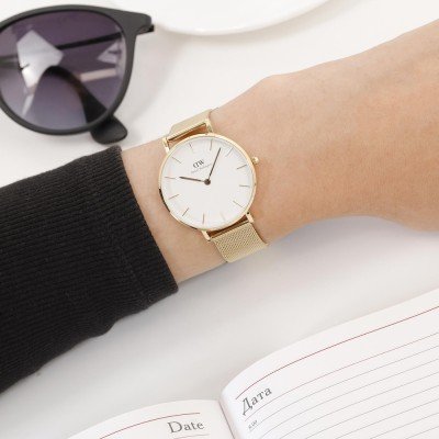 This Daniel Wellington watch has a case made of stainless steel with a diameter of 32 mm and is fitted with a stainless steel band. Inside the case lies a Miyota movement and the watch features a Mineral crystal.